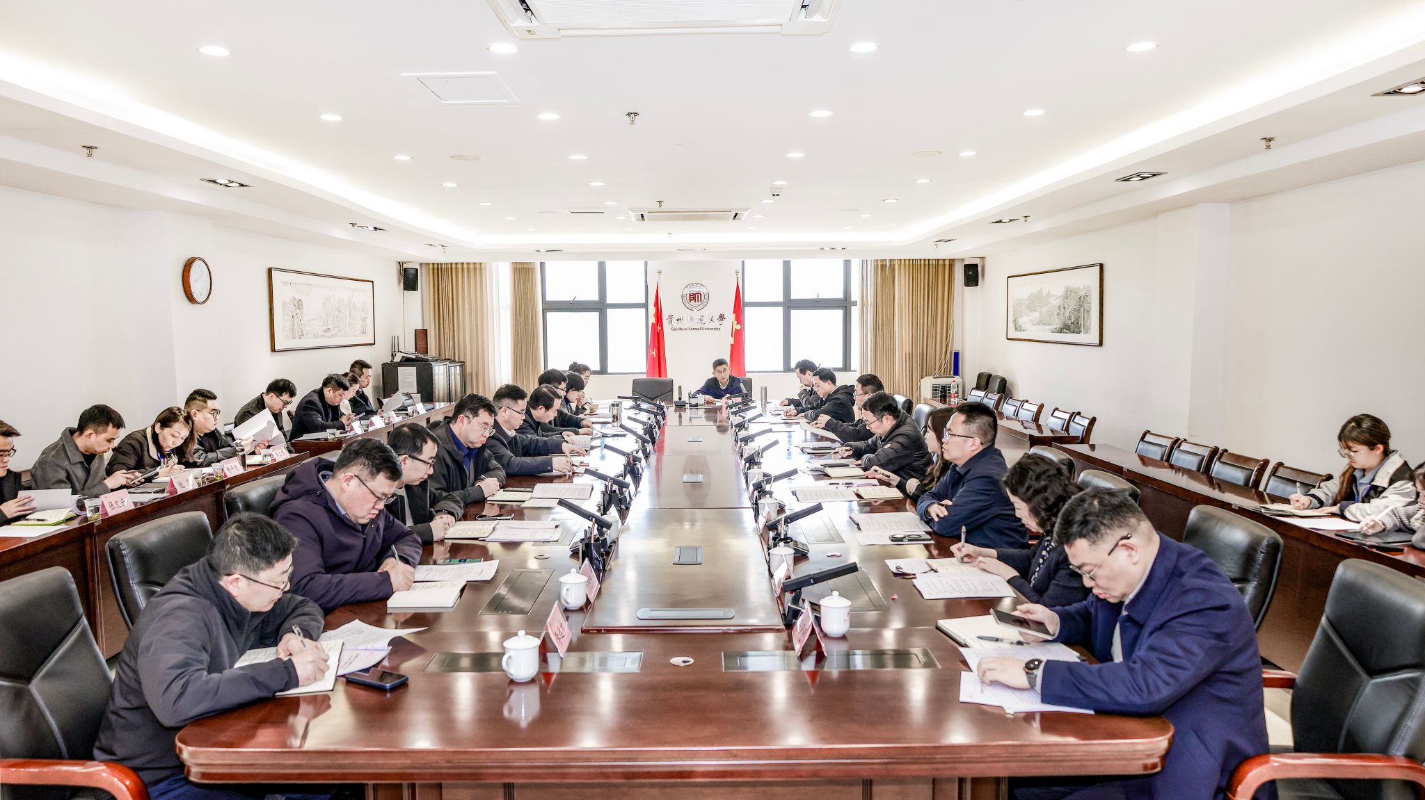 3月24日下午,贵州师范大学党委理论学习中心组树立和践行正确政绩观学习教育专题集体学习研讨会在行政主楼五楼2会议室召开。校党委副书记、校长张绍东主持会议,校党委领导班子成员、校党委委员参加学习。学校党建工作领导小组成员单位主要负责人、学习教育专班各工作组组长列席。