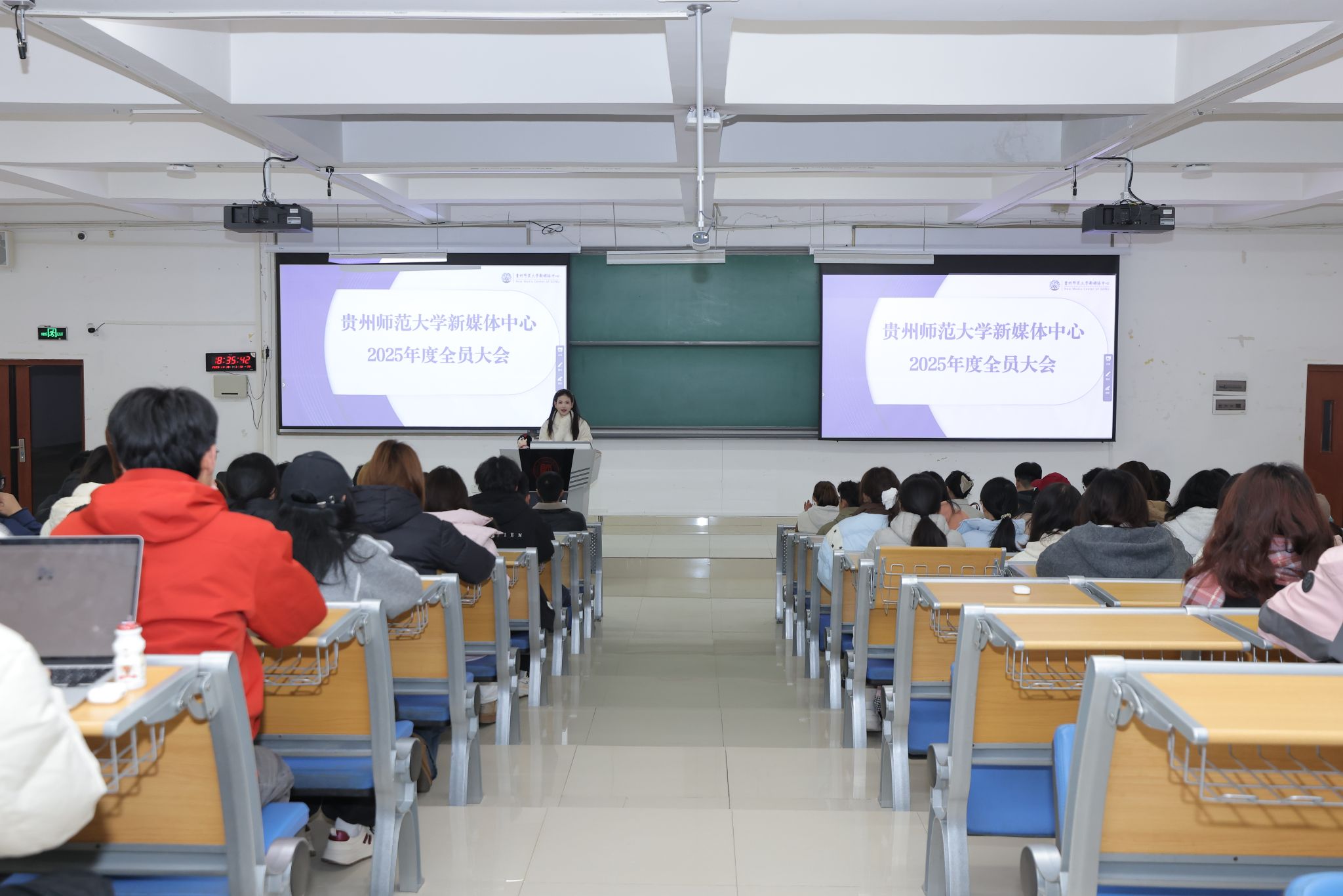 11月19日,贵州师范大学新媒体中心2025年度全员大会在东区GJ6301教室召开。校党委常委、宣传部部长丁龙出席并讲话,宣传部副部长张杭,指导教师王玥、郑兴鹏,以及来自校新媒体中心的130余名学生记者参会。