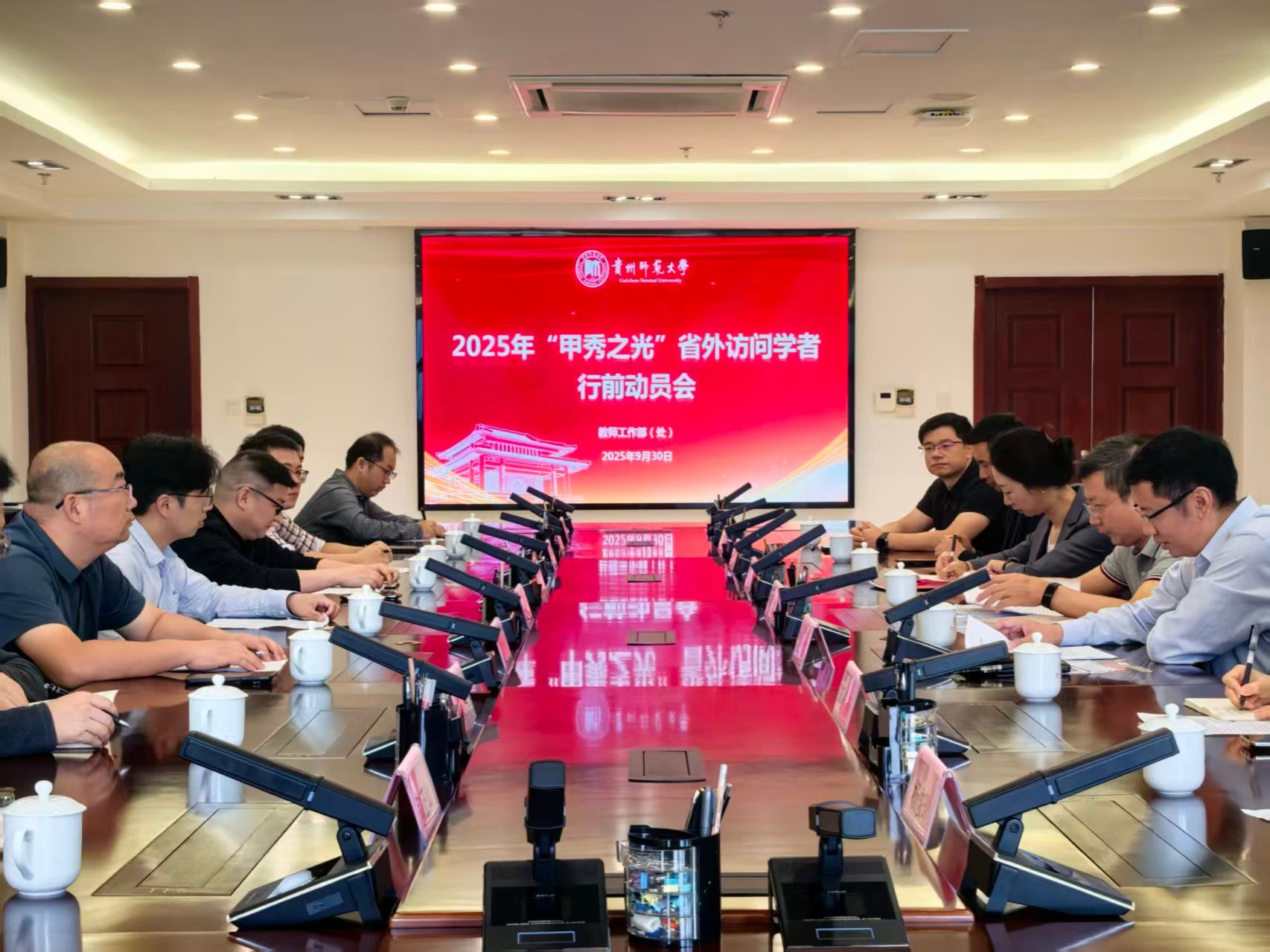 9月30日上午,学校2025年“甲秀之光”省外访问学者行前动员会在东区行政楼主楼5楼(2)会议室召开。校党委书记黄其松出席并讲话。副校长伍权主持。访问学者、教师工作部(处)相关工作人员参会。