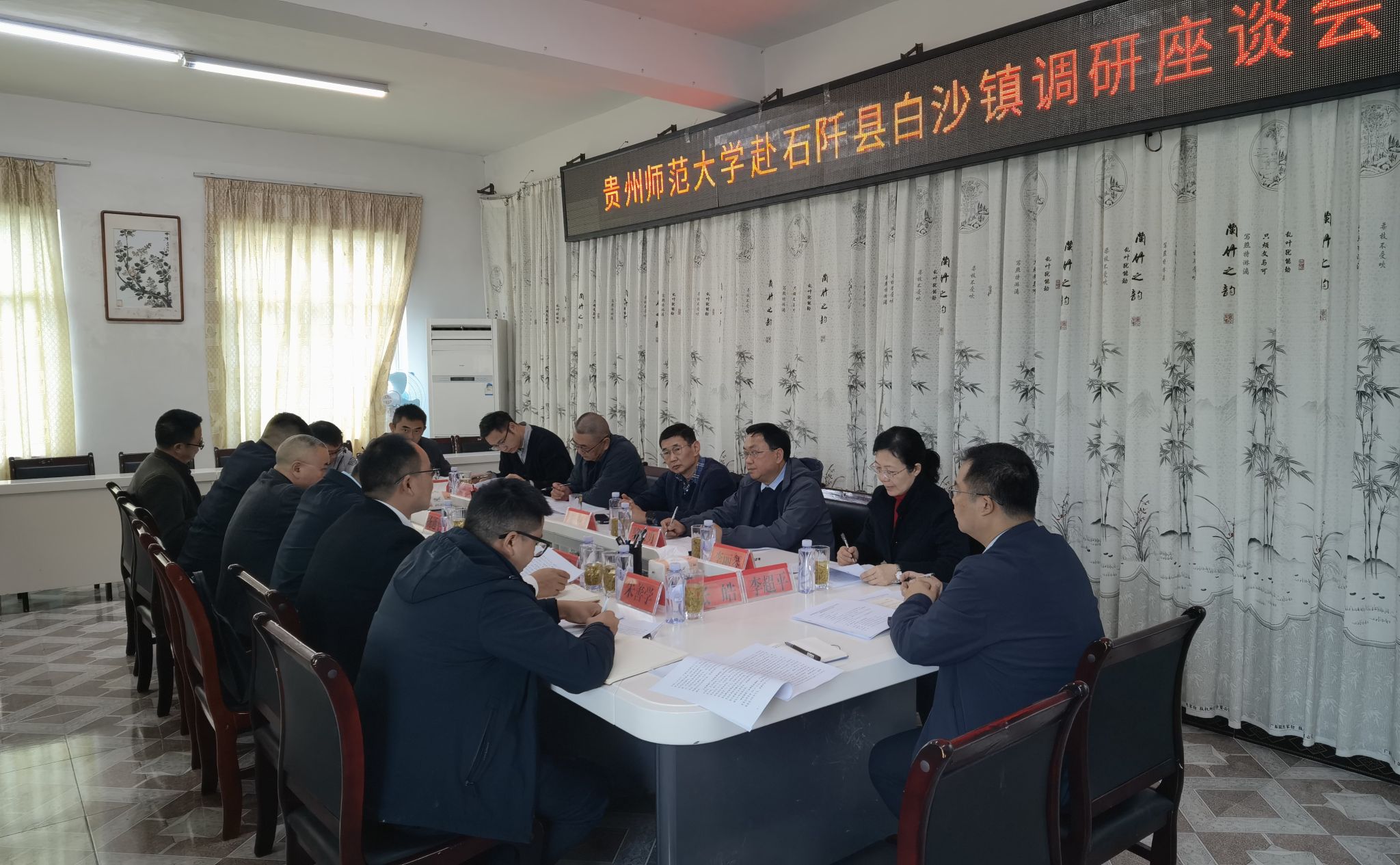 在调研座谈会上,甘卫国代表石阡县委、县政府,对贵州师范大学长期以来给予石阡县的支持与帮扶表示衷心感谢。白沙镇党委书记曹令就全镇经济社会发展总体情况作了介绍,学校驻村干部汇报了驻村工作开展情况。