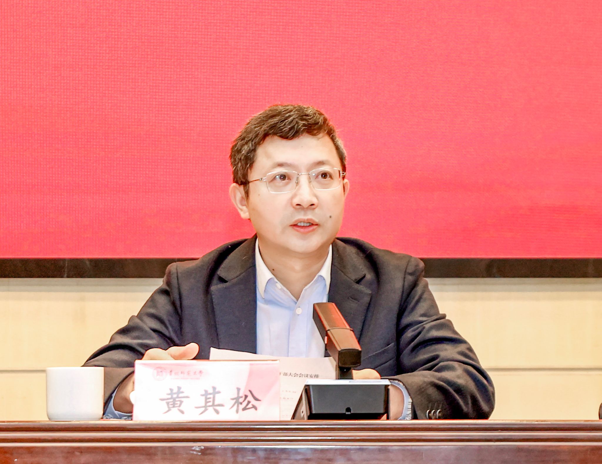 黄其松在讲话中指出,2026年是“十五五”教育发展的关键开局之年,做好本年度工作意义重大、责任重大。就高效完成年度重点工作,黄其松提出三点要求。一是以上率下强作风、淬炼本领。要以党中央部署开展的树立和践行正确政绩观学习教育为契机,紧扣教育强国建设目标,坚守立德树人根本任务,坚持以师生为中心,以优良作风为学校事业发展保驾护航。二是以上率下抓重点、攻坚克难。学校年度重点工作已经明确,面对艰巨任务,要坚持“全校一盘棋”,统筹各方力量、整合优质资源,迎难而上、攻坚克难,积极稳妥推进各项重点任务落地实施。三是以上率下凝心聚力、抓落实。一切工作最终要落在“干”字上,全体中层干部作为学校发展的“关键少数”,要多调研、深研究、勤沟通,以心中有数的定力、手上有招的能力、真抓实干的魄力,奋力交出一份师生满意、学校认可的优异答卷。
