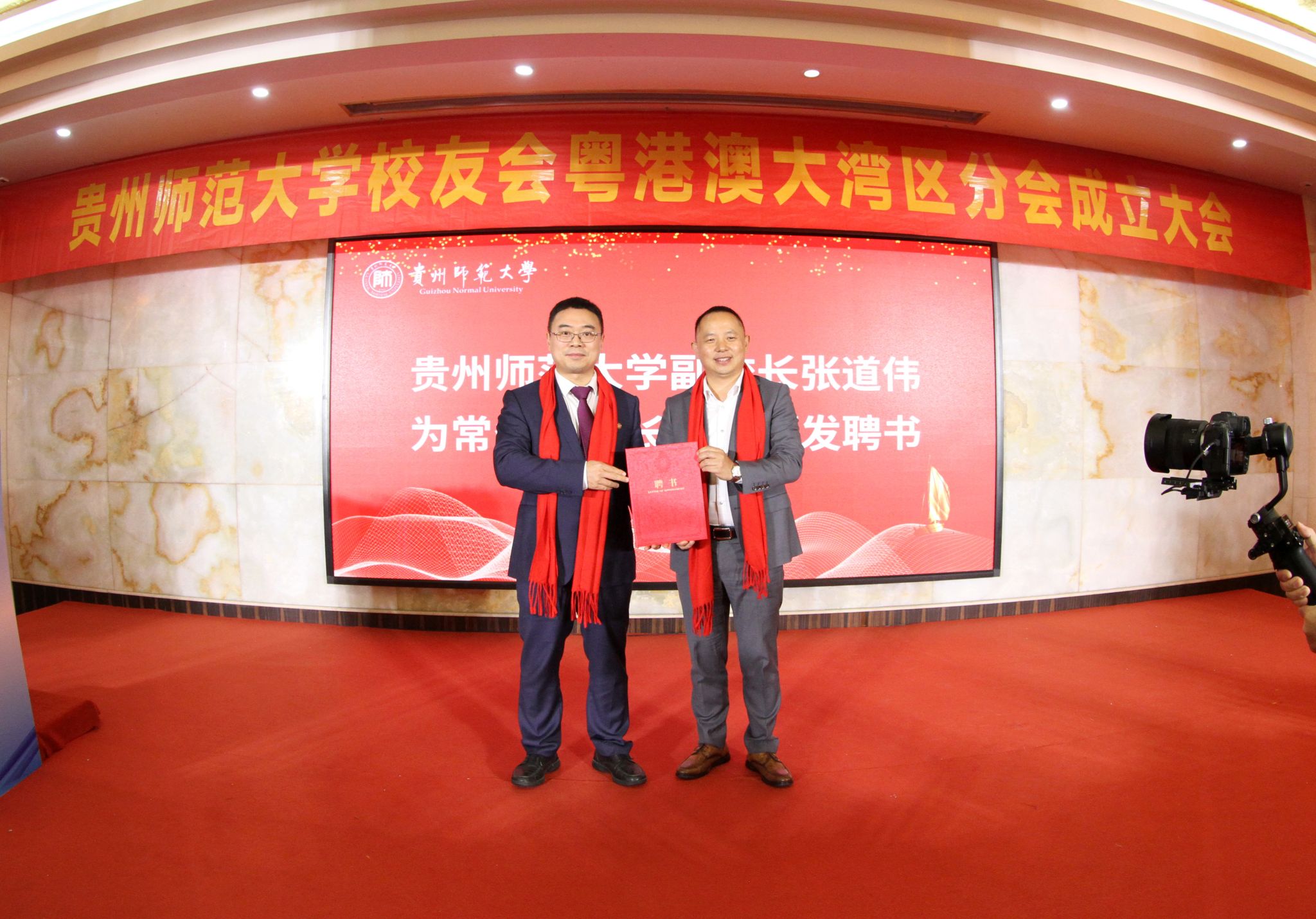 在成立大会上,张道伟宣读了《关于“贵州师范大学校友会粤港澳大湾区分会成立申请”的批复》。张绍东向分会授予“贵州师范大学校友会粤港澳大湾区分会”牌匾,并为分会会长黎永梅颁发聘书;张道伟为分会常务副会长、副会长颁发聘书;孙克艳为分会监事长、秘书长、副秘书长及理事等分会其他核心成员颁发聘书。