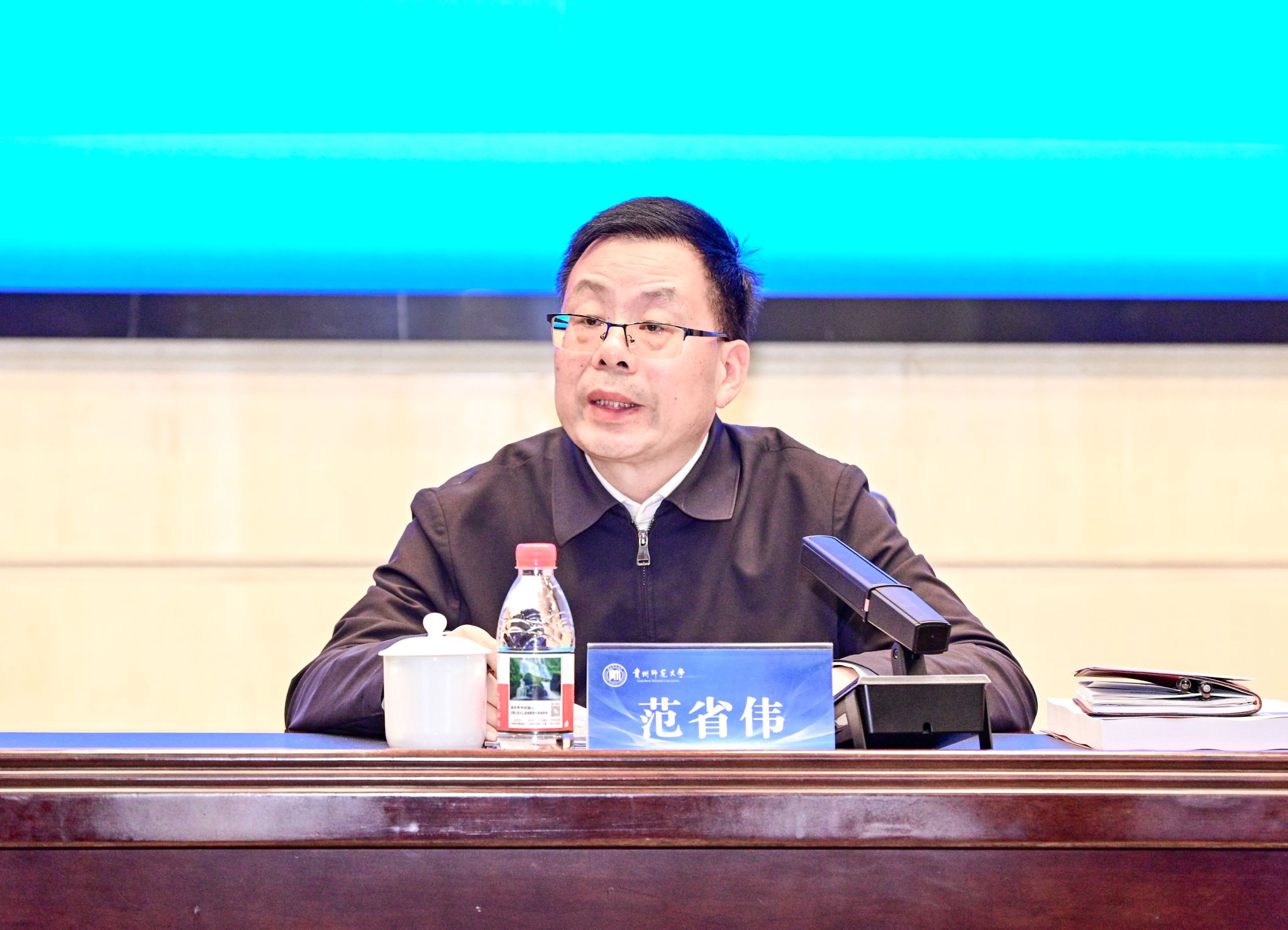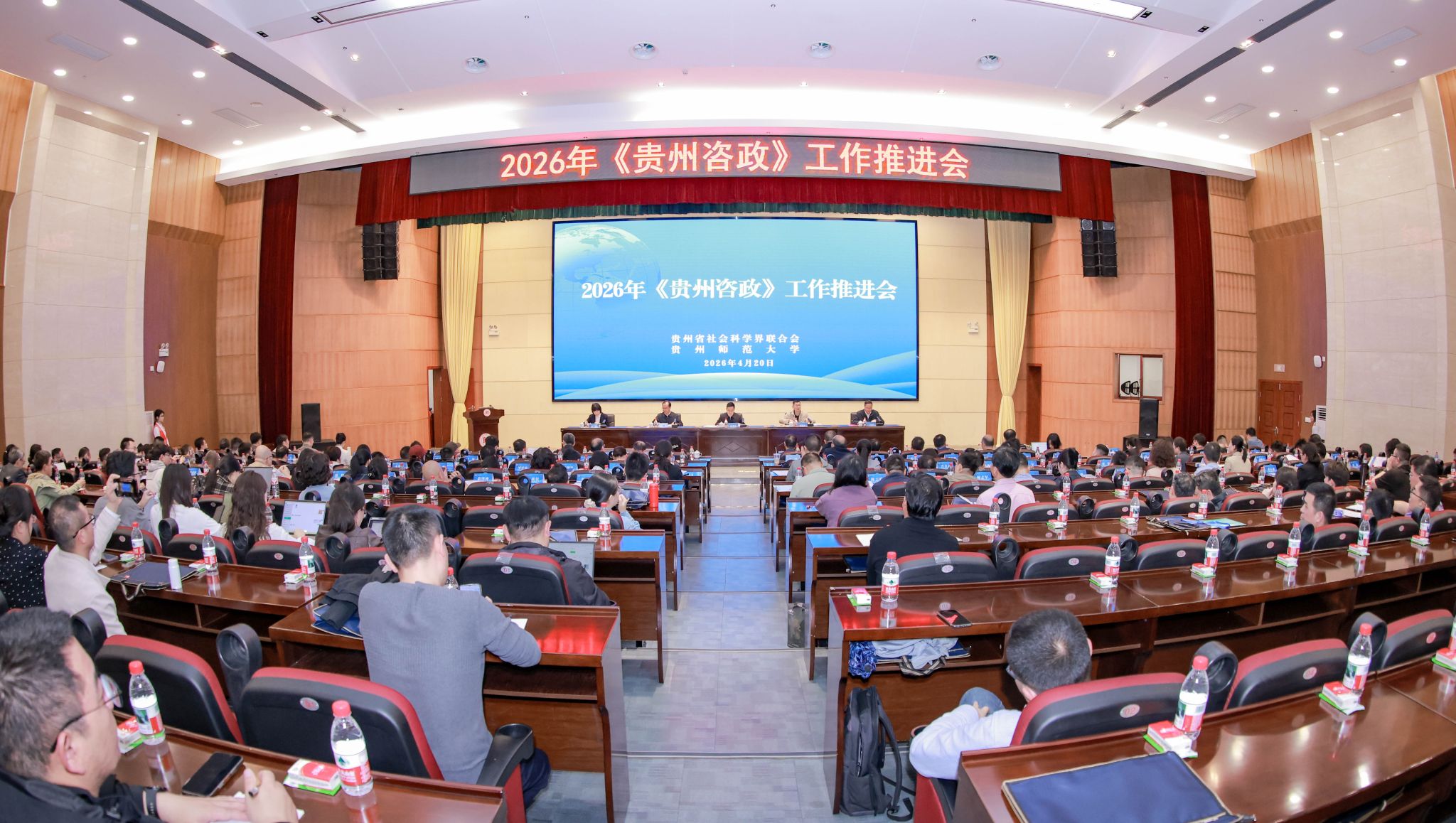 4月20日下午,2026年《贵州咨政》工作推进会在贵州师范大学东区会议中心一楼学术报告厅召开。省社科联党组书记、副主席范省伟讲话,贵州师范大学校长张绍东致辞。省社科联党组成员、副主席黄昌祥与我校副校长刘瑾分别代表两家单位签订战略合作框架协议。省社科联党组成员、秘书长丁凤鸣主持会议。贵州工程应用技术学院党委书记熊星、贵阳康养职业大学党委书记冉江舟等高校领导出席会议。